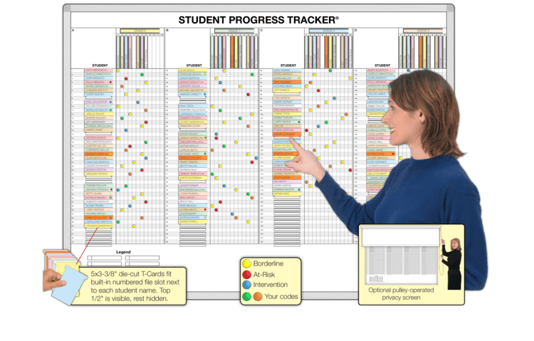 Magnet colors show the status of any at-risk student and the progress they're making in any given subject. 9 Sizes for 40 to 816 students.
