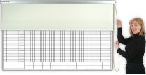 Bold-Lyne™-framed Magnalux® 4' x 6' porcelain-like steel framed whiteboard with built-in T-card file slots, heat-fused printed for this system.