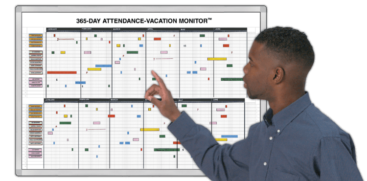 365-Day Attendance-Vacation Monitor™ Magnetic Dry-Erase Whiteboard Systems