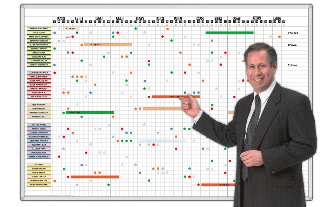 Move color-coded write-on magnets, reposition time segments, set up and show activity lines, priorities, milestones and action points on this board. Everything is flexible and moveable. Includes magnetic cardholders and card-keying template. Choose from 4 cell sizes: 1/2" x 1/2" to 1" x 2-1/2" to accommodate as little or as much line item data needed each week.