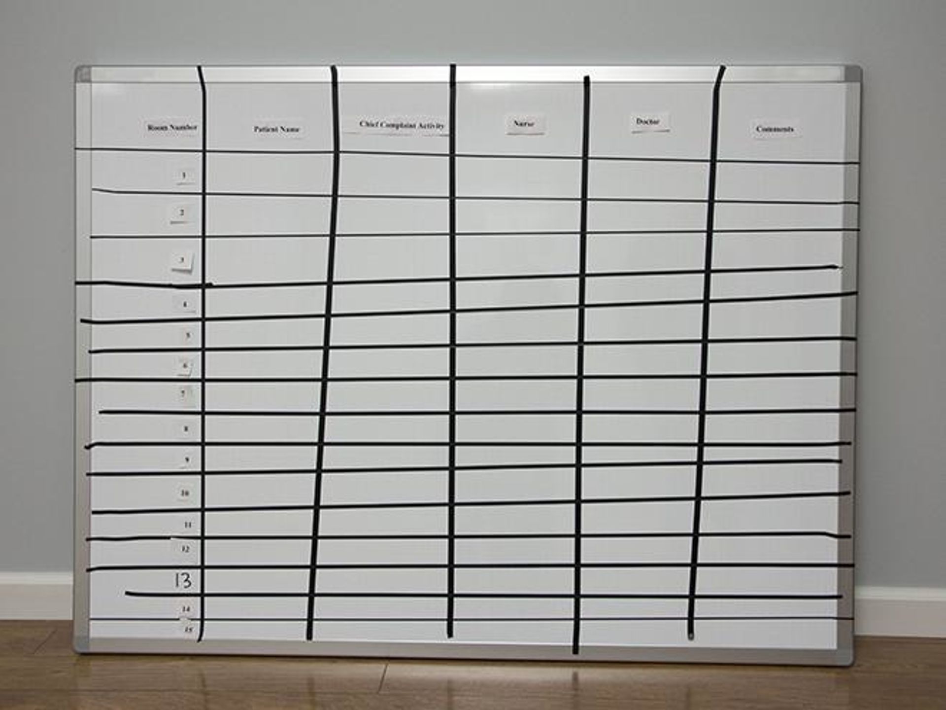 While it may be messy at first glance, to members of the Nursing unit at a Washington, DC hospital, this whiteboard provided an innate degree of order to the hospital staff. Created using a plain whiteboard paired with some black industrial tape, the dry erase board was used as a room/patient assignment board that detailed which patients were assigned to specific rooms, as well as the nurses and doctors assigned to their case. We often receive requests from users of industrial tape when it comes to issues maintaining a dry erase surface. Unfortunately, using thick industrial-strength tapes on any whiteboard can often leave behind residue that can be difficult to remove, causing permanent damage to the surface. Adopters of industrial strength tape often come to us looking for a quick fix for this issue, however in most cases, the damage has already been done. Unfortunately, whiteboard cleaning and conditioning solutions are not developed to combat tape residue, which leaves us with our hands tied . It's a problem that's not only inconvenient, but downright avoidable—which makes it all the more frustrating.