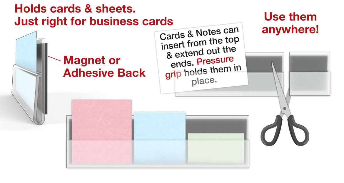 Magnetic CardGrip™ Open-Top, Pressure-Hold Transparent Card and Note Holder Channels
