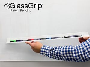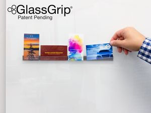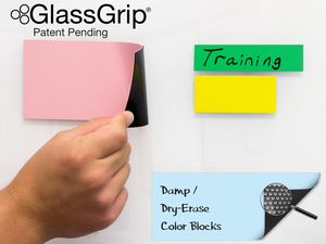 GlassGrip® is a honeycomb plastic material with hundreds of dry micro-suction cups. When pressed on clean glass whiteboards they firmly grip the glass surface until peeled up to move.