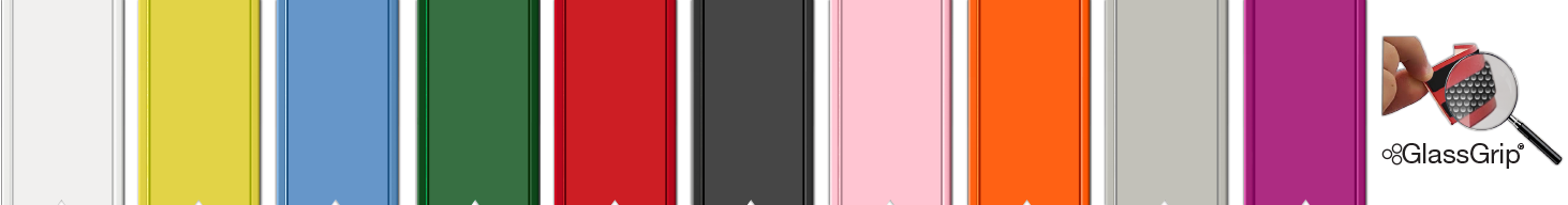 Cardholders are top quality solid-color extruded plastic card-channels with full-length GlassGrip® micro-suction-cup strips on the back. GlassGrip® is not static-cling, nor adhesive and leaves no sticky residue. Place and reposition them as often as needed.
