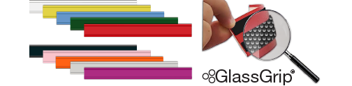 Cardholders are top quality solid-color extruded plastic card-channels with full-length GlassGrip® micro-suction-cup strips on the back. GlassGrip® is not static-cling, nor adhesive and leaves no sticky residue. Place and reposition them as often as needed.