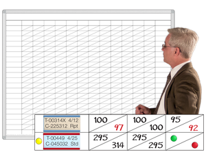 Subdivide the grid with the bold PreciseLine® whiteboard tapes and use the optional color coded card holder magnets for your special headings and data posting.