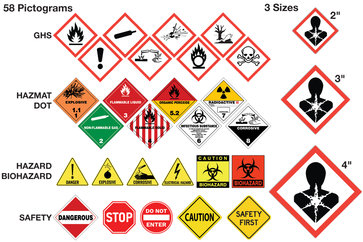 GHS Hazard MagnetsHazmat (DOT) MagnetsTriangle Hazard MagnetsBiohazard MagnetsGeneral Safety Magnets