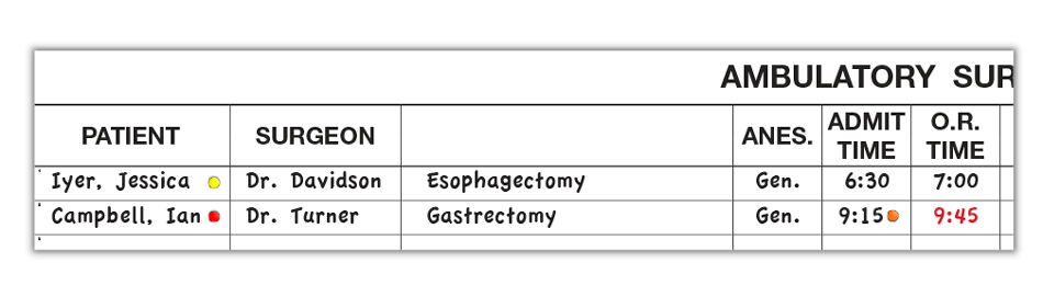 Ambulatory Surgery Schedule Magnetic Dry-Erase Hospital 4' x 6' Whiteboard System