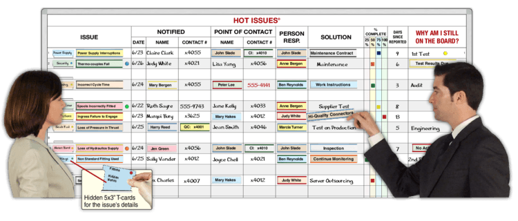 When you display your 20 Hottest Issues on the wall in full view for your team to tackle, they get resolved fast. It's that simple. With Optional built-in T-Card feature for issue's history and details