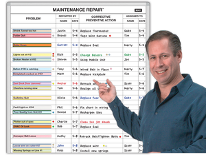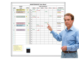 It quickly becomes the focus for your management meetings and evolves into a tool that demands action and accountability, motivating your team's efficiency every time they see it. The magnetic "issue" cardholders and magnet signal color-codes let you instantly see at-a-glance each issue's subject, category and its % Completion status. It also includes magnetic staff name cardholders for speedy neat posting.