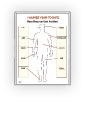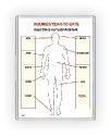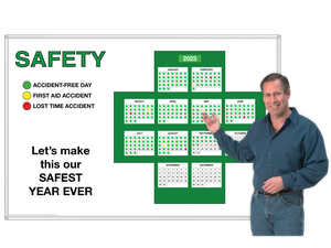 It alerts you to any pattern of body-part injuries that may not otherwise be apparent, prompting early preventive safety fix-it action. This is specially true when using the optional built-in T-Cards at each body part. They can hold details of each incident and any corrective actions taken. It grabs immediate attention and makes it very personal when each person lifts the card in the file slot to read the specific incident report details. Give it a try, all you can lose is a lot of "hurt". 2 Sizes: 4x3' or 3x2'