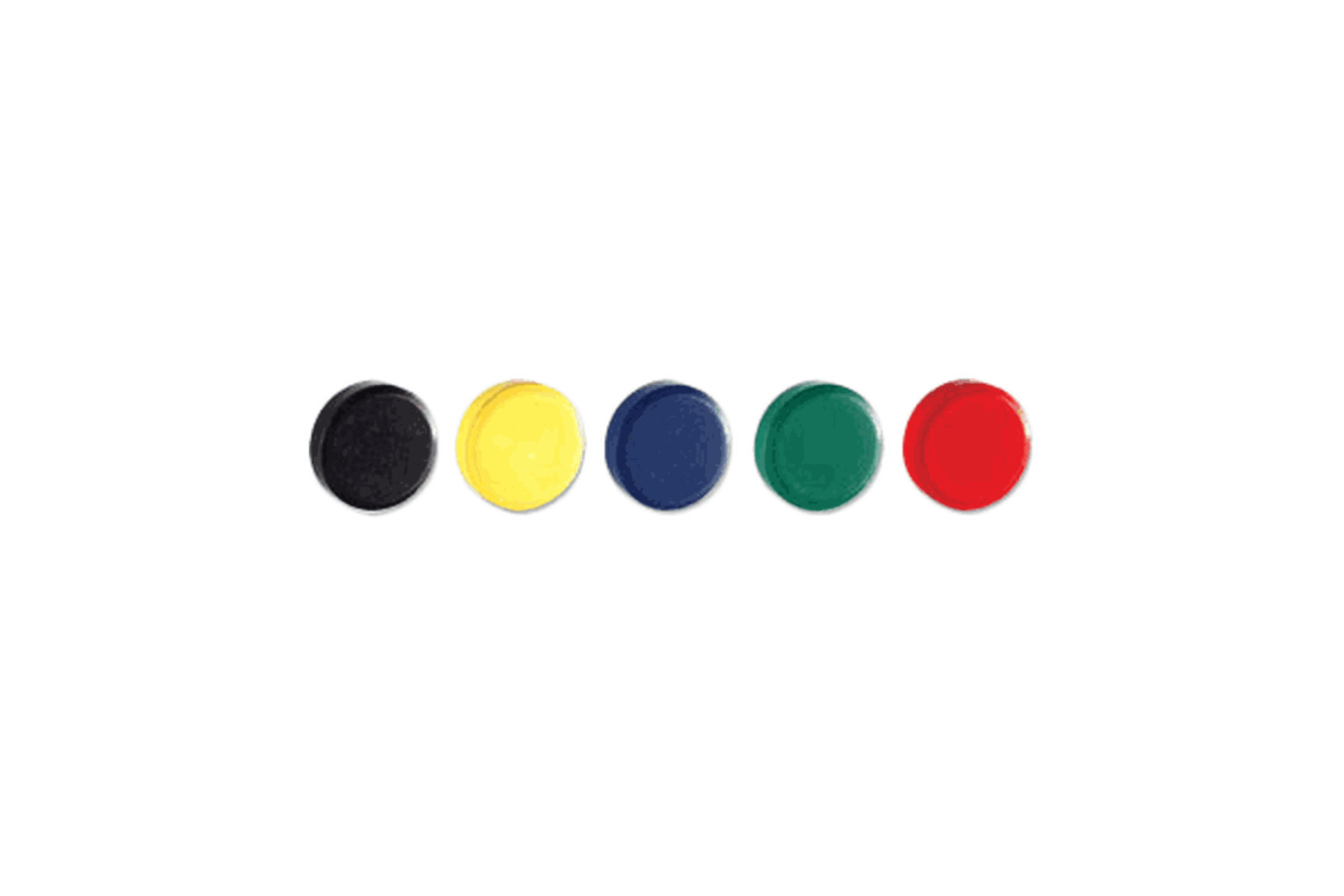 Ceramic magnets, 11/16" dia, 3/16" thick, assorted (red, green, blue, black, yellow) to show status codes.