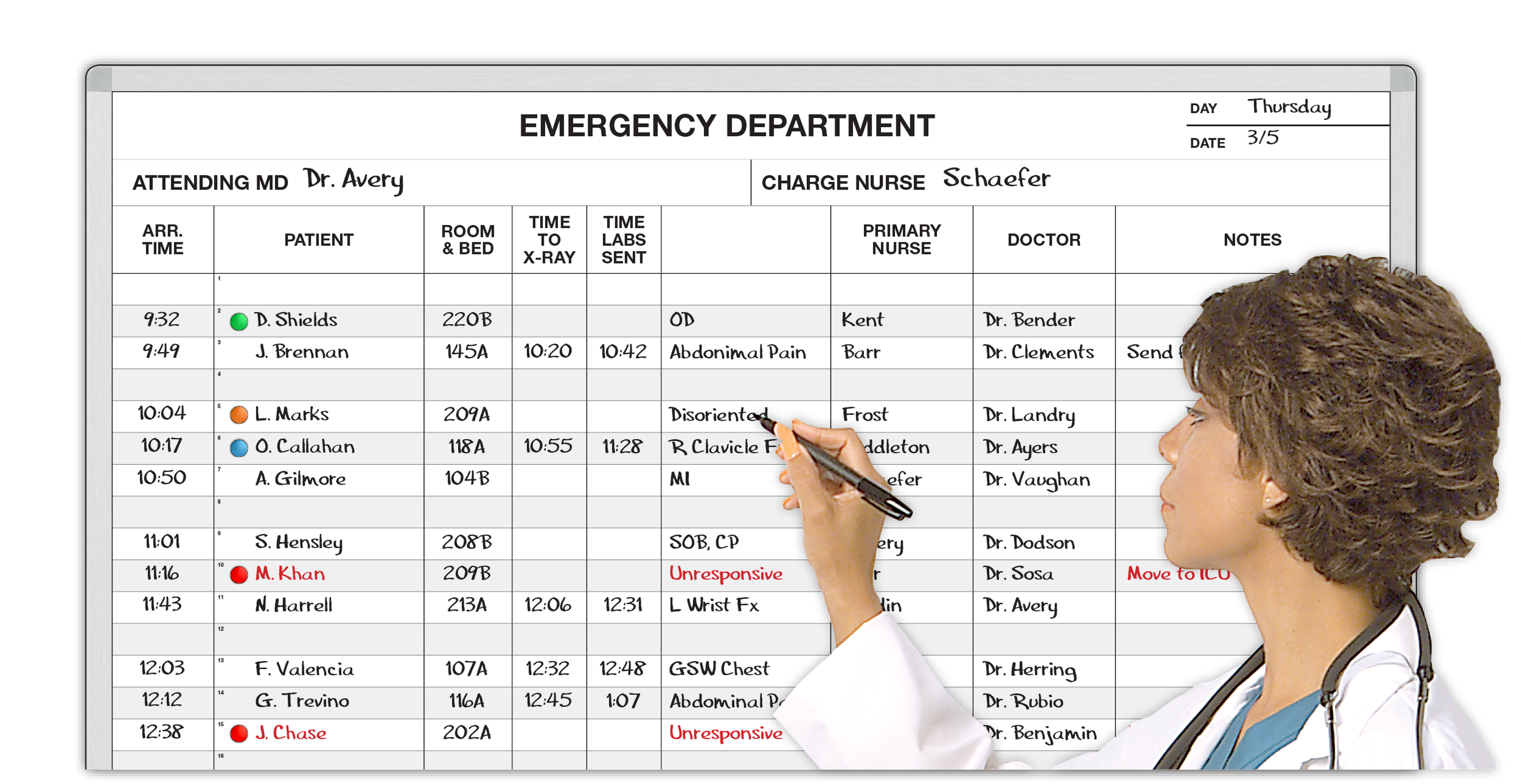 E. R. Patient Intake Magnetic Dry-Erase Hospital Whiteboard System