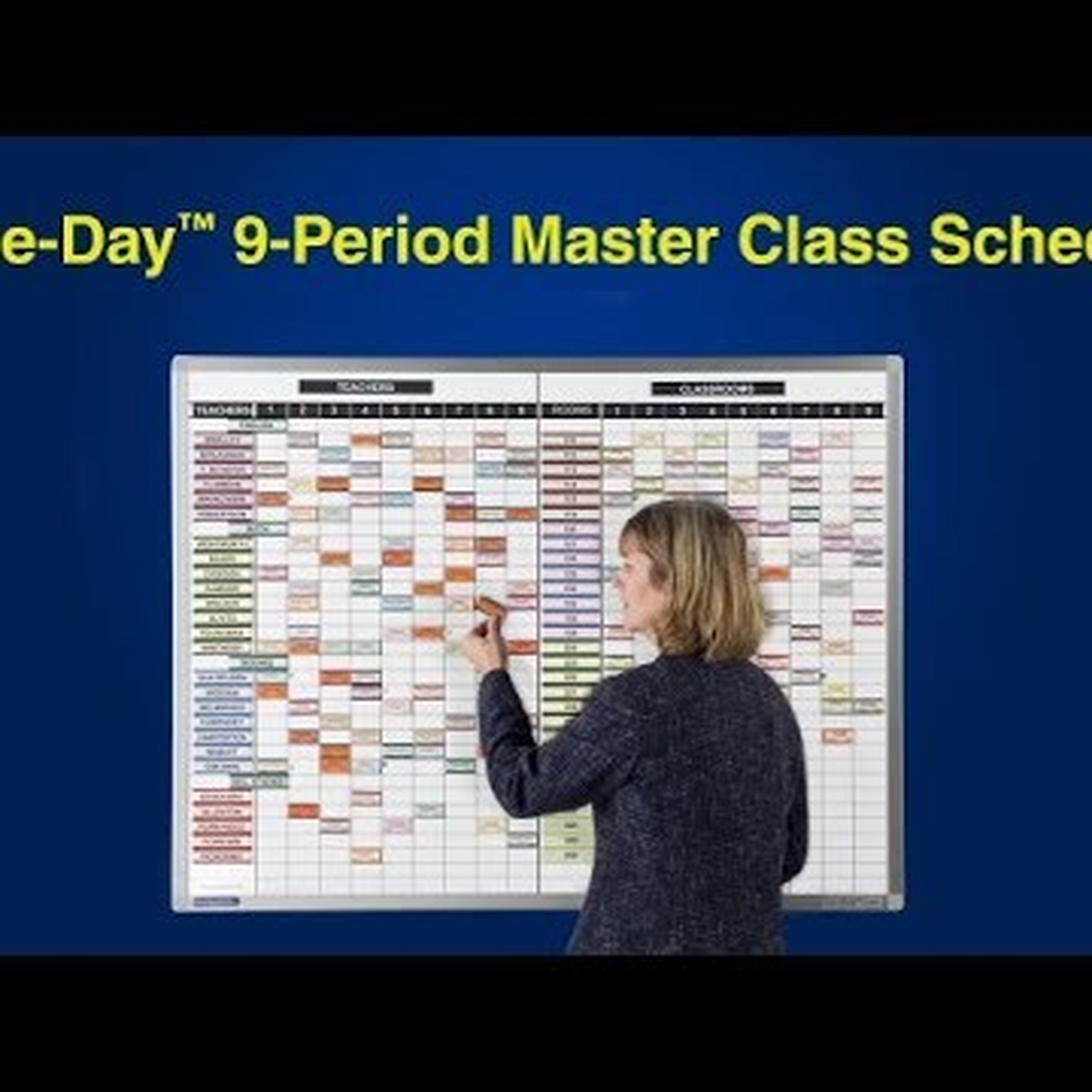 9-Period Same-Day Master Class Schedule Magnetic Dry-Erase Steel Whiteboard System