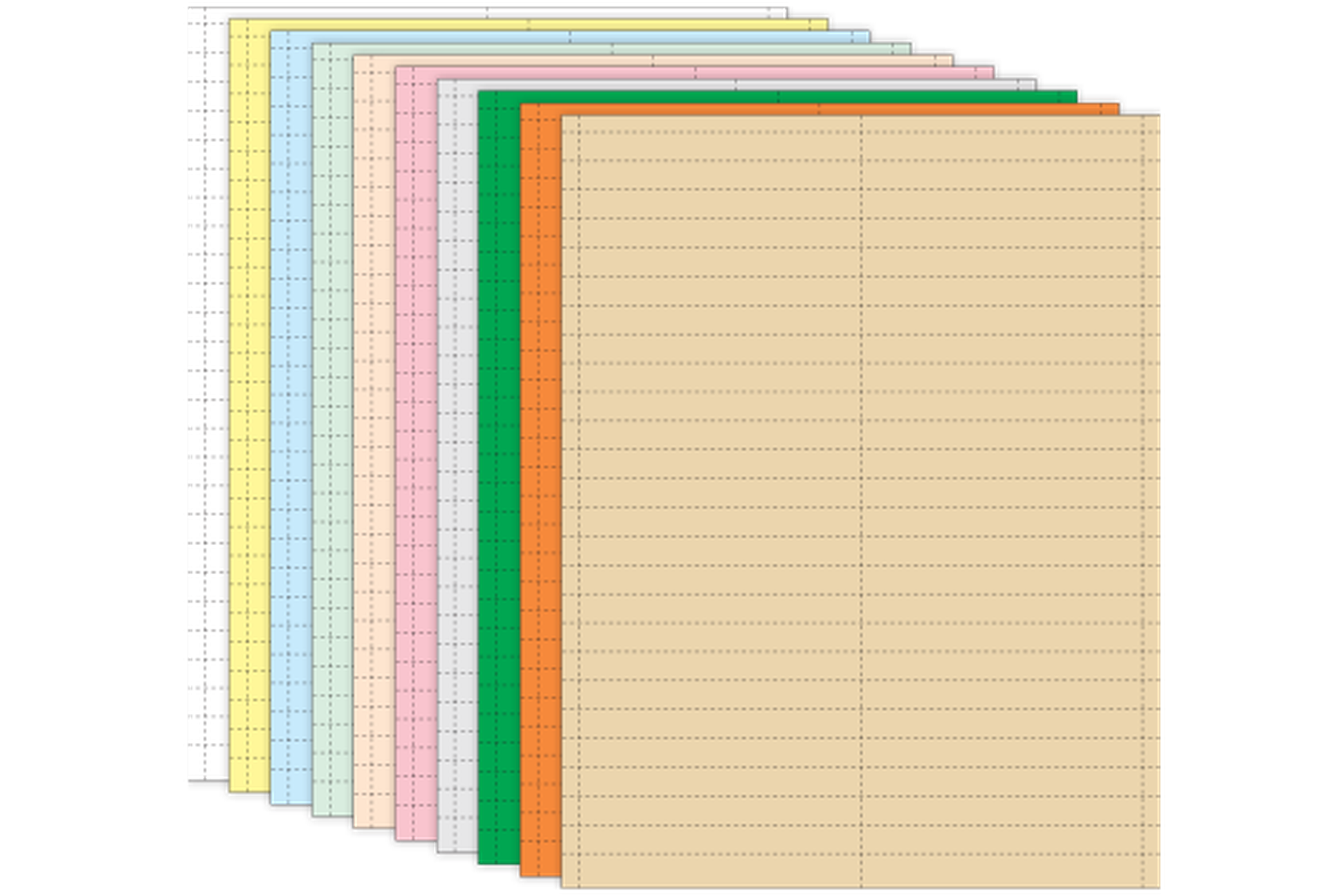 Package of 10 sheets (500 total) card inserts in 10 colors perforated 50-up to fit Magnatag #CH54 1/2" x 4" cardholders