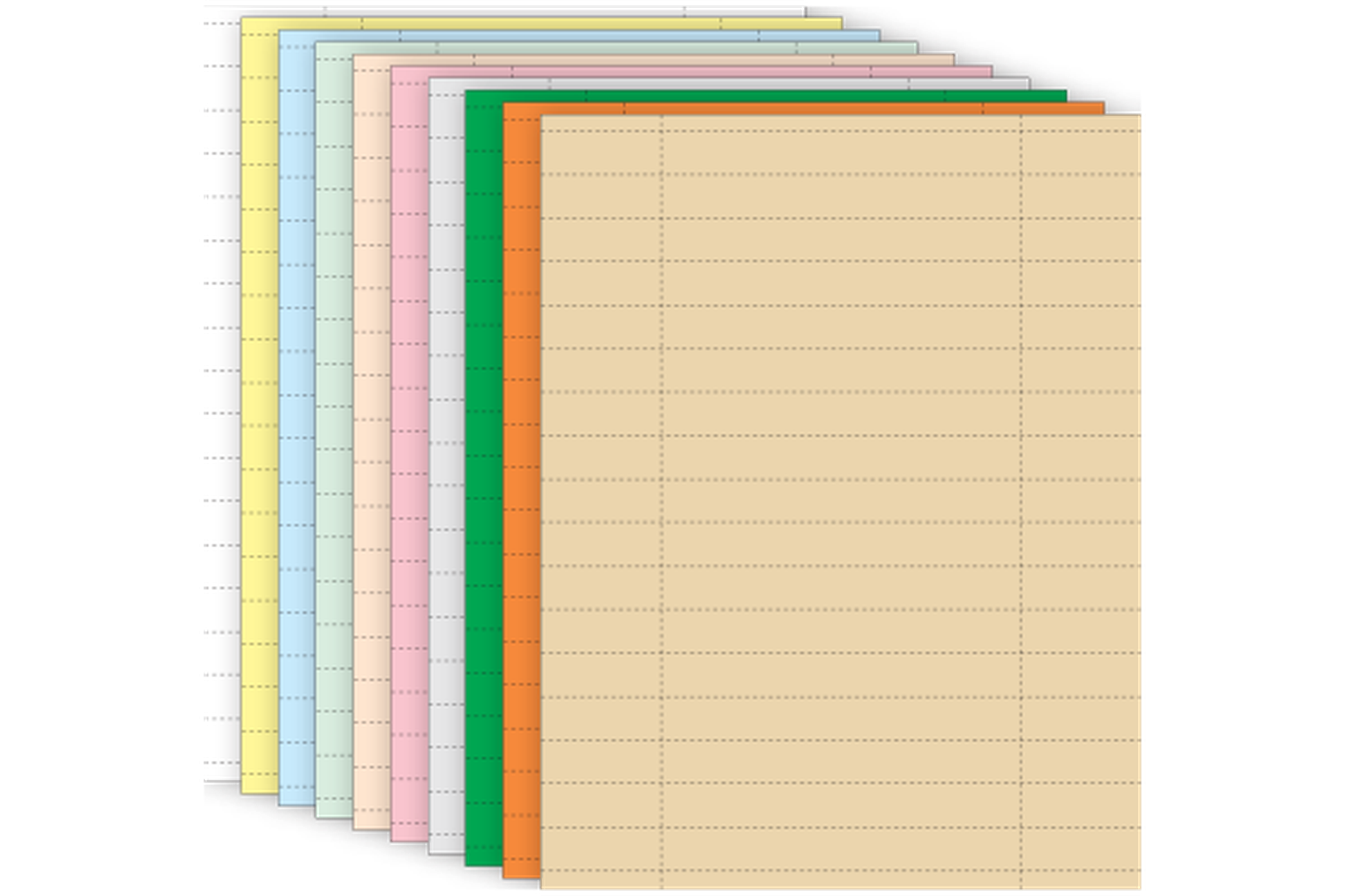 Packages of 10 sheets (510 total) card inserts in 10 colors perforated 17-up to fit Magnatag #CH85 5/8" x 5" cardholders