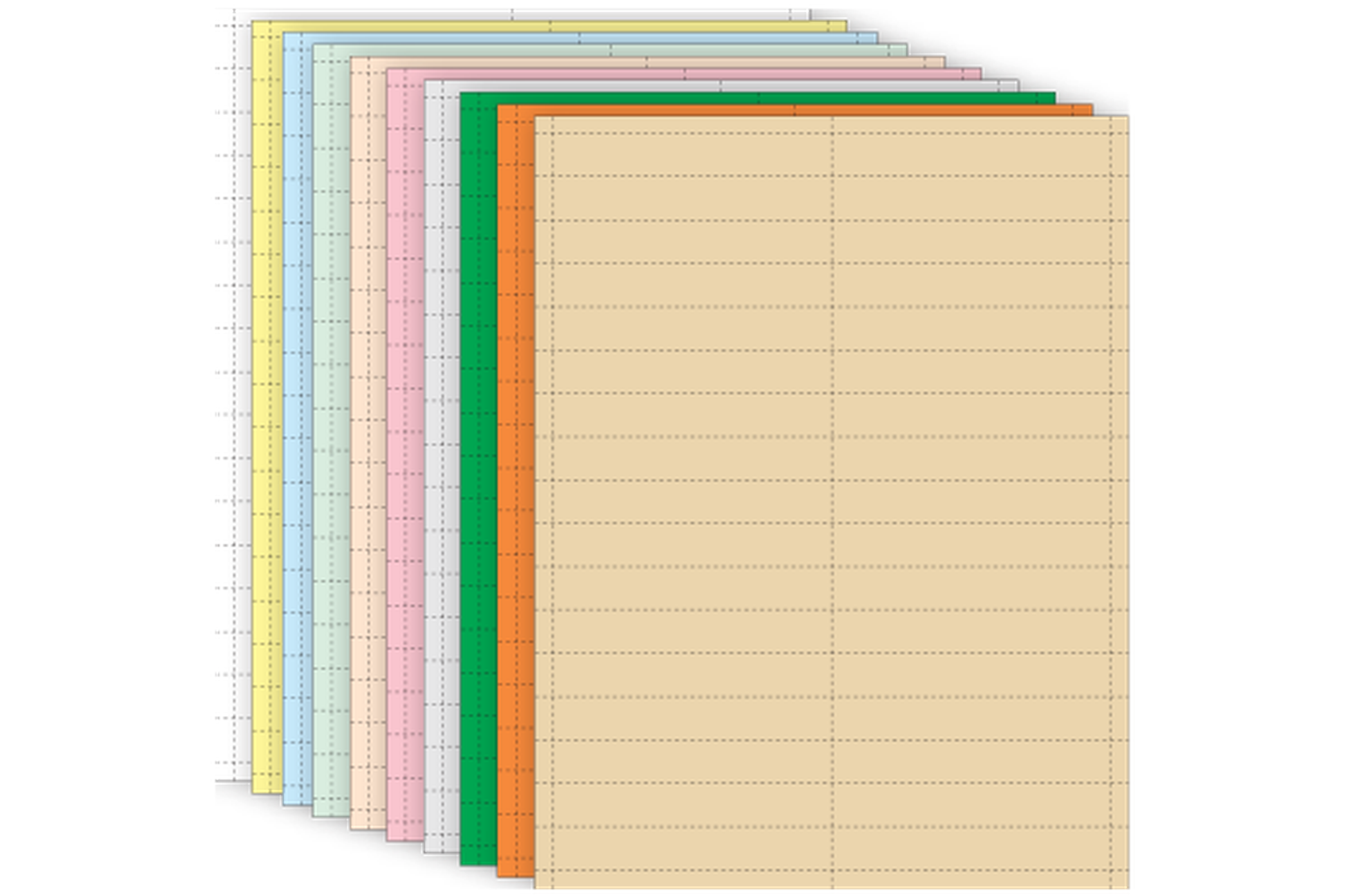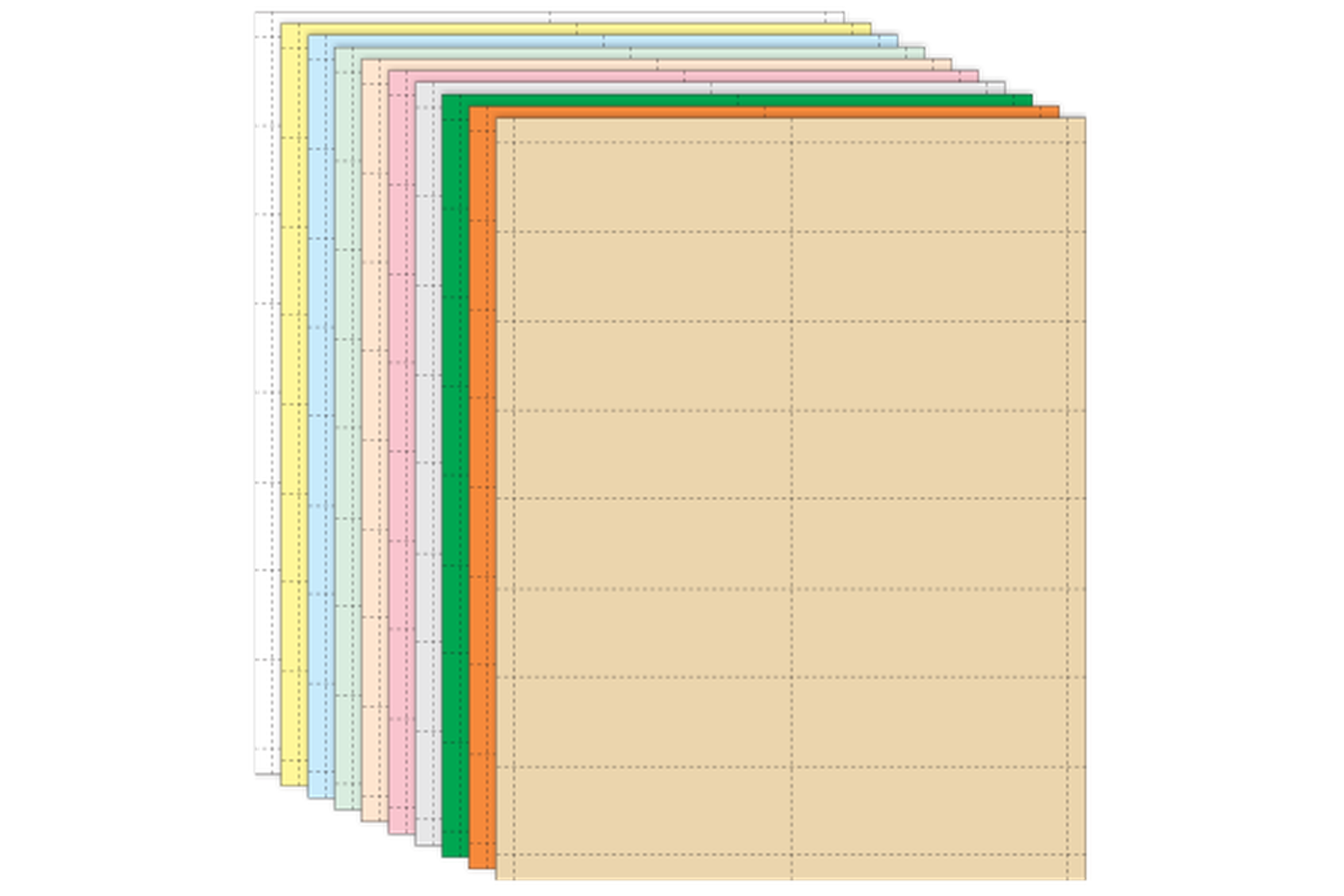 Packages of 10 sheets (320 total) card inserts in 10 colors perforated 16-up to fit Magnatag #CH134 1-3/8" x 4" cardholders