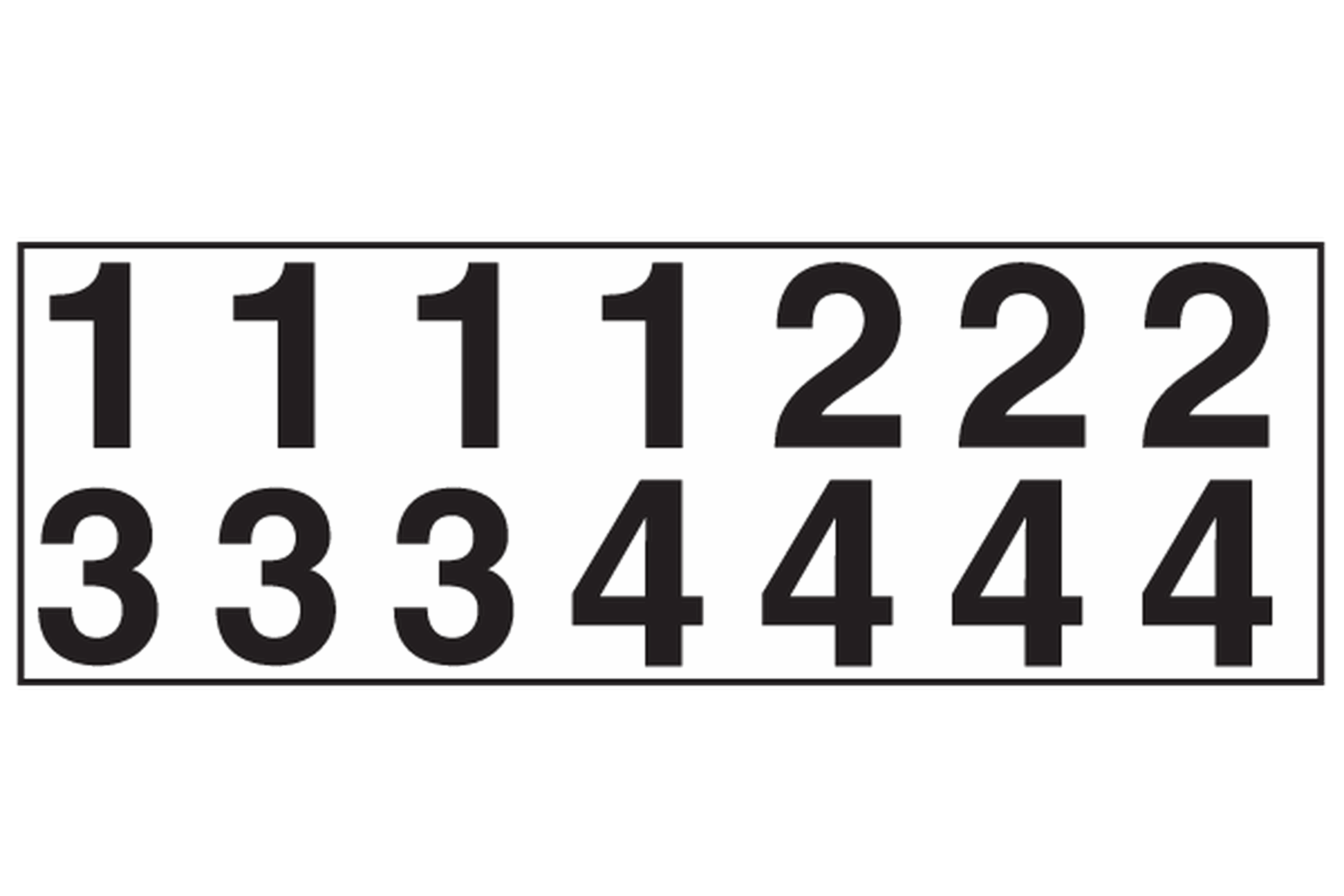 Set(s) of 125 press-on 3/4" vinyl die-cut black numbers (removable, not reusable)