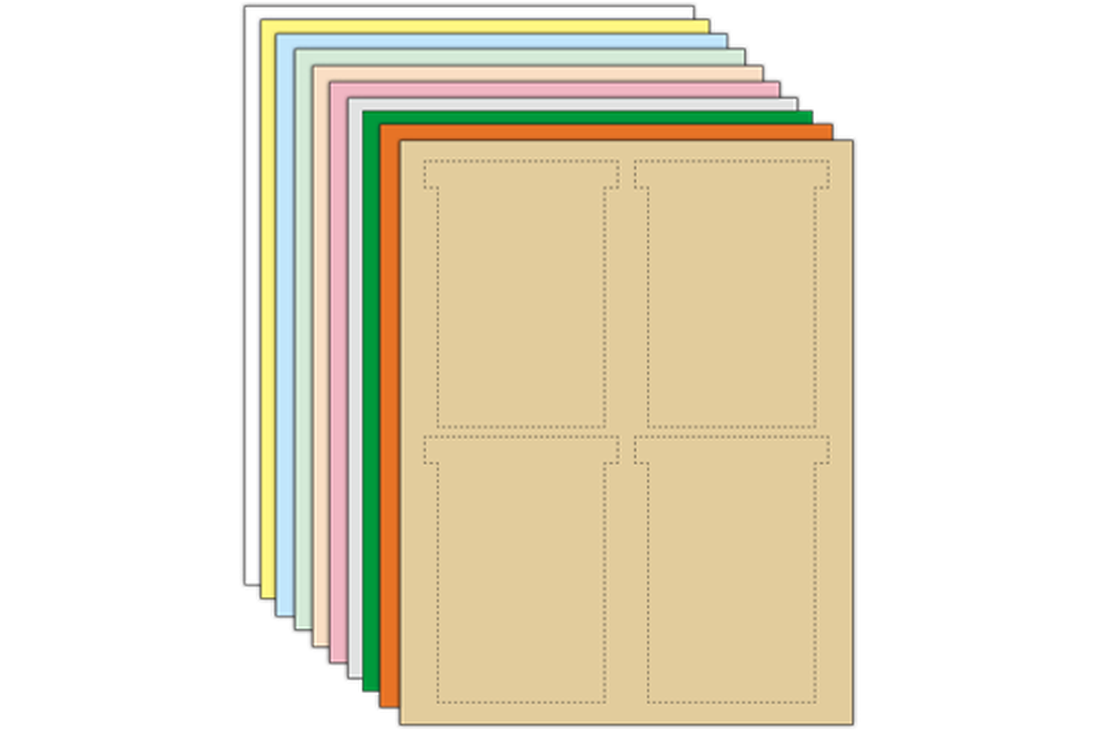 Packages of 200 5"h x 3-5/8"w T-Cards with 1/2" visible tops, perforated 4-up on letter size sheets for computer printing. 10 colors.