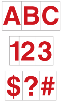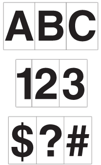 Printed on flexible vinyl-laminated magnet sheet. Full-width self-aligning, Helvetica style letters and numbers cling tight to steel surfaces indoors or out*. After a short time they "lock on" magnetically to the steel surface and are difficult to slide, but lift off easily for repositioning.