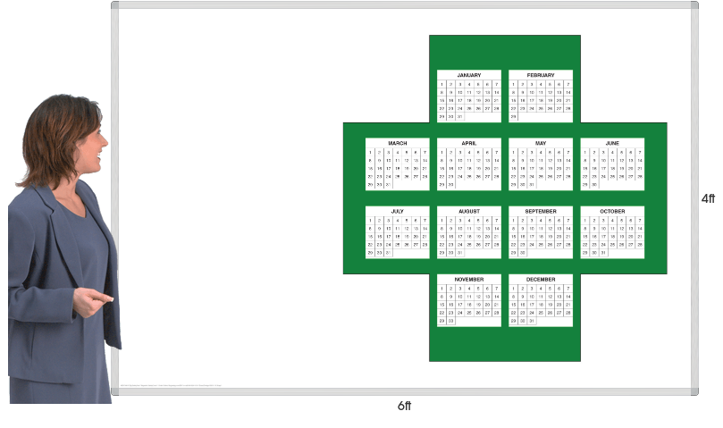4' x 6' Big SafetyYear™ SafetyCross® magnetic whiteboard with 365-day Safety cross design and your custom printed background design