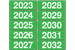 Includes set of ten 2" x 6" magnetic years, white text on green magnet.
