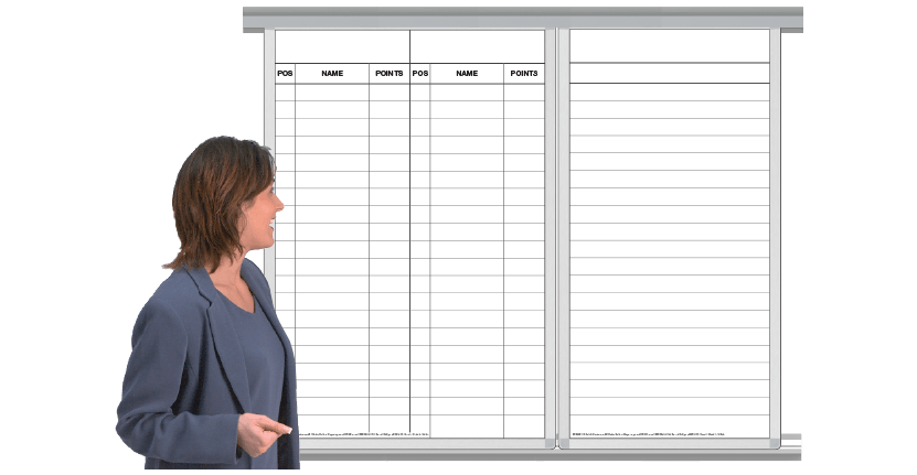 This board levels the sales contest between new and veteran salespeople. Anyone can win in each specific sales category. It promotes peak sales every day, recognizing your best sales people in each category. 4 formats for 2, 4, 6 or 8 contests x 4 sizes for 12, 20, 28 or 36 sales people