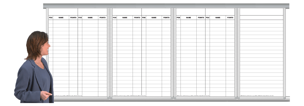 This board levels the sales contest between new and veteran salespeople. Anyone can win in each specific sales category. It promotes peak sales every day, recognizing your best sales people in each category. 4 formats for 2, 4, 6 or 8 contests x 4 sizes for 12, 20, 28 or 36 sales people