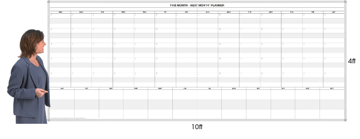 Plan daily for 2 months and keep your 12 month plans in view. Three board sizes: 3x4', 4x6' & 4x10' and 2 styles: open day or 3-shift days