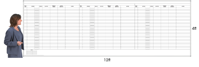 4'h x 12'w BoldLyne® framed MagnaLux® porcelain-like steel magnetic whiteboard with built-in T-card file slots for each row, heat-fused printed for this system