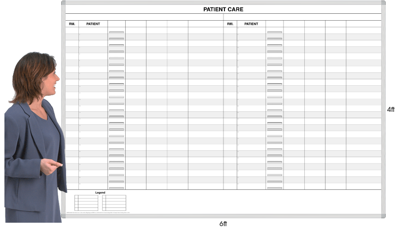 Lines and board headings are heat-fused printed into the porcelain-like dry-erase magnetic steel whiteboard surface to stay like new for a lifetime of daily hospital use.