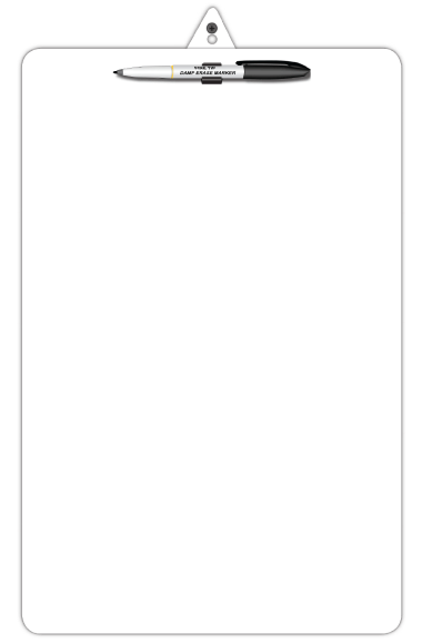 Hang them on the wall, door, or any vertical surface, etc. with the key-hole slot hanger which swivels flat behind the board when used portable. Lift it off the wall to write on it. It has a built-in pen clip and comes with a fine point, dry-erase black pen.