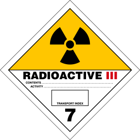 1.1 Mass Explosive Hazard1.2 Explosive - Blast, Projection Hazard1.3 Explosive - Minor Blast, Fire or Projection Hazard1.4 Explosive - Major Fire or Projection Hazard1.5 Explosive - Blasting Agent1.6 Explosive - Extremely Insensitive, No Mass Explosive Hazard2.1 Flammable Gas2.2 Non-flammable, Non-toxic Gas2.3 Inhalation Hazard, Poison Gas3 Flammable Liquids4.1 Flammable Solids4.2 Spontaneously Combustible Solids4.3 Dangerous When Wet5.1 Oxidizing Substances5.2 Organic Peroxides6 Poisonous Materials6.1 Inhalation Hazard6.2 Infectious Substances7 Radioactive I7 Radioactive II7 Radioactive III7 Fissile8 Corrosive Substances9 Miscellaneous Dangerous Goods/Hazardous Materials