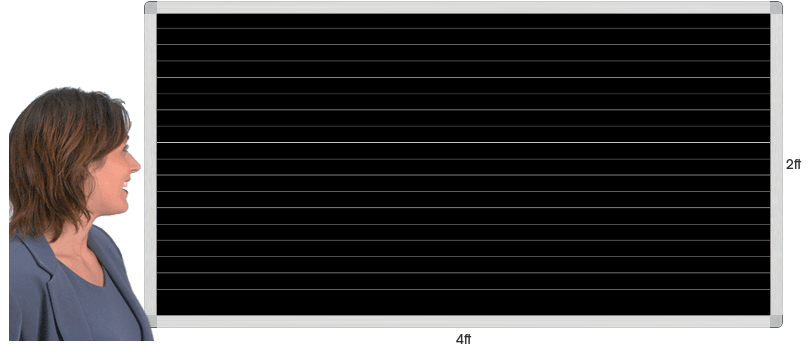 So simple, but so effective. Long, edge-numbered colored job cards show job length. You see both the committed and open time for each production unit. 5 board sizes 2x4' 3x4 4x4 4x6 4x8' for 47" to 95" wide rows