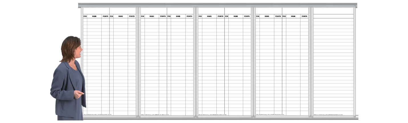 This board levels the contest between new and experienced people. Both beginners and veterans can win in any specific category. Recognize, rank and reward leaders in each category and overall performance. 16 Sizes for 12 to 36 names. 4 formats for 2, 4, 6 or 8 contests.