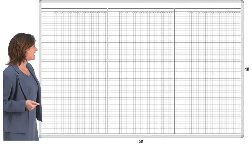 Schedule, plan, see and track project and program line item activity against a 31-day timeline each month. 4 board sizes 3x2'. 3x4'. 4x6', 4x12' for 3 to 12 montths