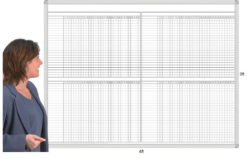 Schedule, plan, see and track project and program line item activity against a 31-day timeline each month. 4 board sizes 3x2'. 3x4'. 4x6', 4x12' for 3 to 12 montths