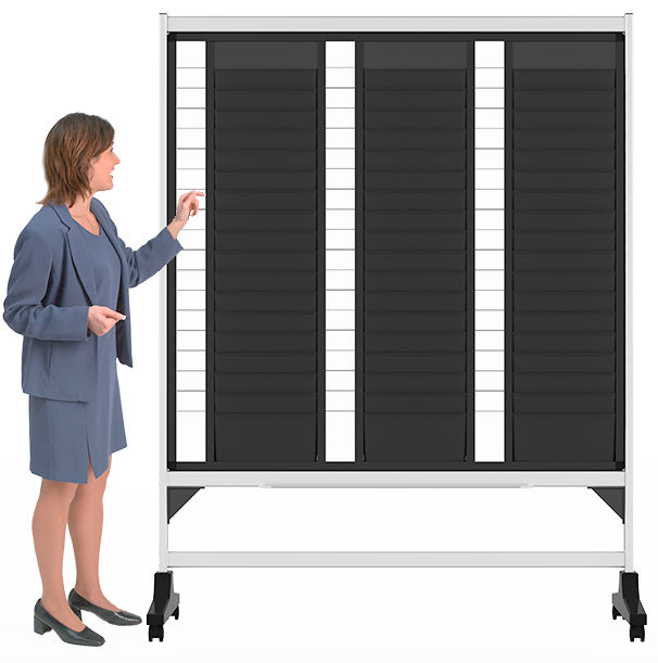 This wall file folder organizer combines color-coded magnets and a dry erase panel to give you and your team an additional level of organization.