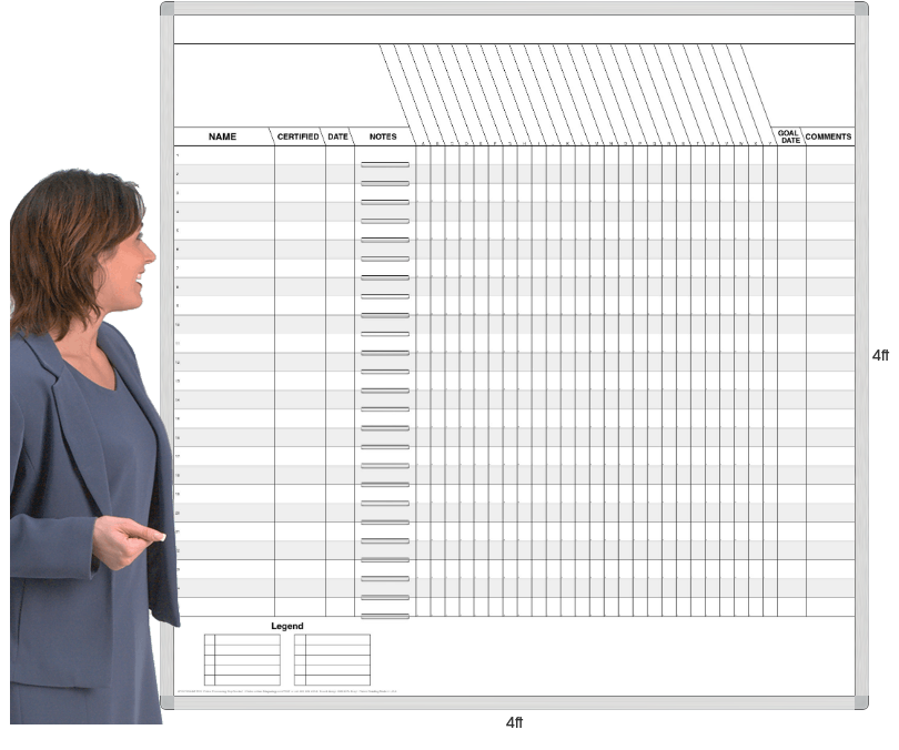 4x4' MagnaLux® steel framed whiteboard with built-in T-Card file and heat-fused printed for this application