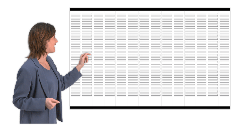 Display your whole story using these color-coded T-Card steel panels. It puts a wealth of deep detail data in view and combines the visibility of a magnetic board with the in-depth data and hands-on access of a card file. 8 Sizes from 58 to 1160 card capacity. Optional RollAround™ Stand or tower