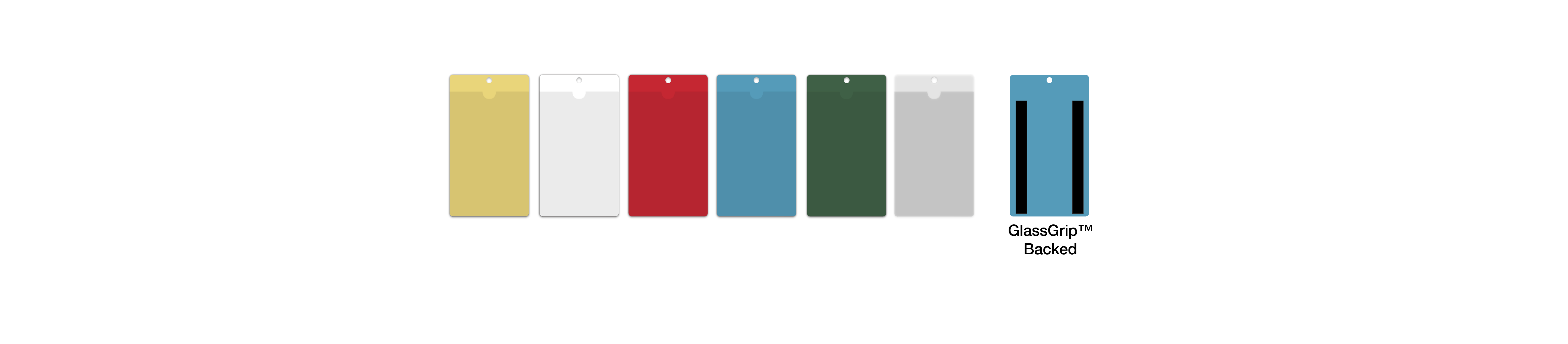 They keep notices clean, flat, quick and easy to read, display, dust-free and transport. 3 styles, 5 sizes, 5 colors and transparent. With GlassGrip® backer. Patent Pending.
