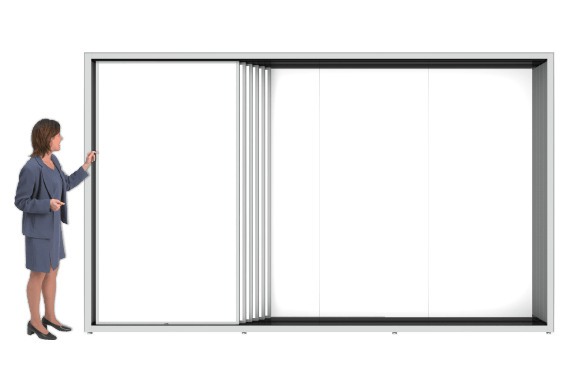 Includes full-size, plain whiteboard steel back-panel. Cabinet price does not include the framed slide-panels.