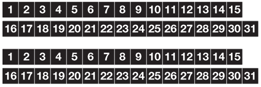 - 1/2" 1-31 Horizontal Date Strips, 2 Months