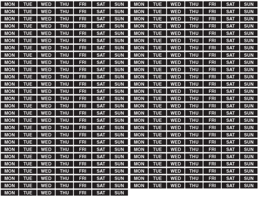 14-Day Set31-Date Set12-Month SetHoliday Set of 1010-Year Set12-Hour Set1/2" Day Horizontal Strips, 8-Week Set1" Day Horizontal Strips, 4-Week Set1/2" 1-31 Horizontal Date Strips, 2-Month Set1/2" 1-31 Vertical Date Strips, 2-Month Set1" 1-31 Horizontal Date Strips, 1-Month Set1/2" Horizontal Month Strips, 48-Month Set2" Horizontal Month Strips, 12-Month Set52-Weekend (104 magnet) Set53-Week (371 magnet) Set1/2" Horizontal 52-Week Strip Set1" Horizontal 52-Week Strip SetA-Z Letter Set