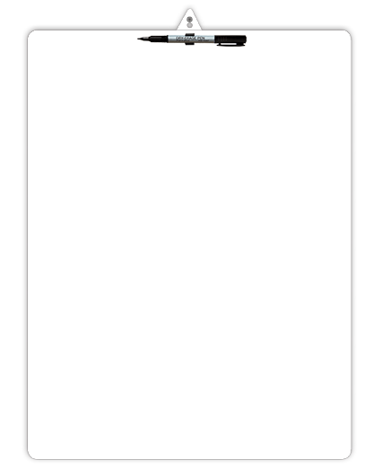 The wall hanger pivots out of sight behind the pen clip. Write on it with the dry-erase pen included. Order it plain white, 1" x 2" grid, horizontal lines, or with your design printed to order. One of the handiest board systems we offer. Not magnetic.