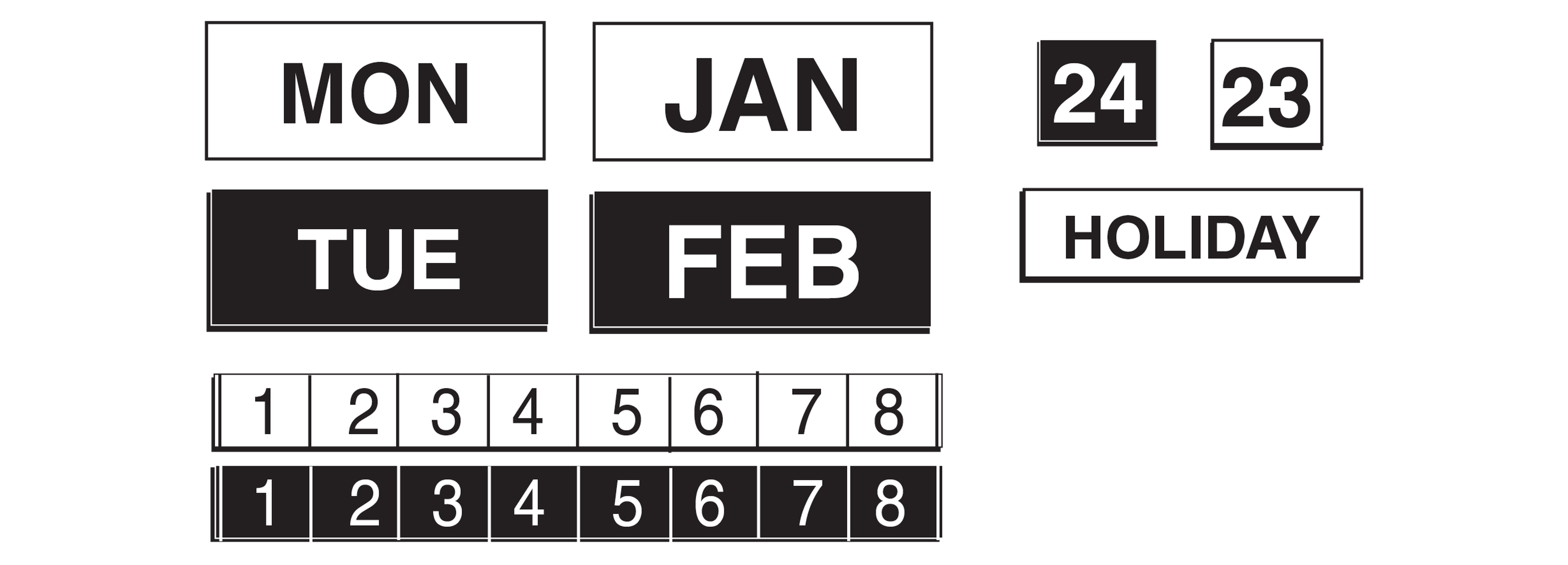 14 Days31 Dates12 MonthsHolidays (10)10 Years12 Hours1/2" Day Horizontal Strips, 8 Week1" Day Horizontal Strips, 4 Week1/2" 1-31 Horizontal Date Strips, 2 Months1/2" 1-31 Vertical Date Strips, 2 Months1" 1-31 Horizontal Date Strips, 1 Month1/2" Horizontal Month Strips, 48 Months2" Horizontal Month Strips, 12 Months52 Weekends (104 magnet set)53 Weeks (371 magnet set)1/2" Horizontal 52 Week Strips1" Horizontal 52 Week StripsA-Z Letter Set
