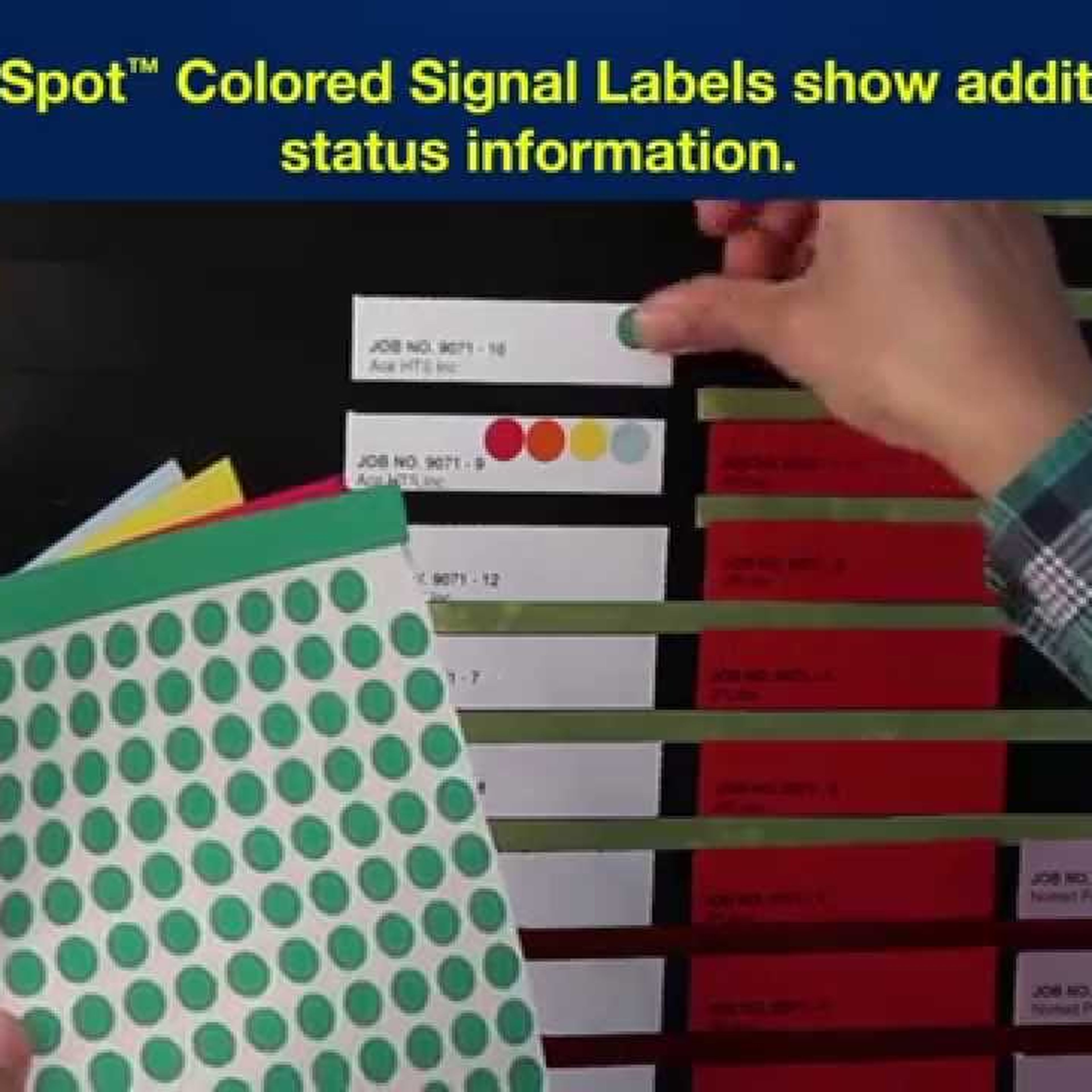 Use on cards, documents, file folders etc., to show status. Die-cut pressure-sensitive adhesive colored paper labels.