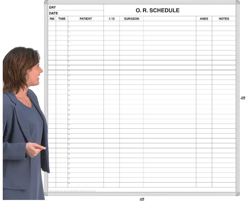 Outpatient Surgery Schedule Magnetic Dry-Erase Whiteboard System