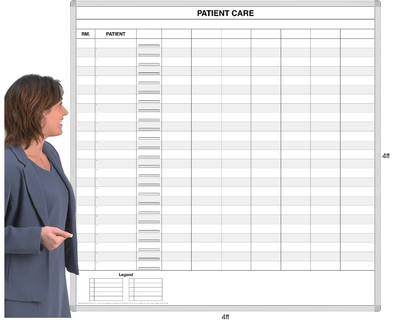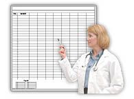 Lines and board headings are heat-fused printed into the porcelain-like dry-erase magnetic steel whiteboard surface to stay like new for a lifetime of daily hospital use.