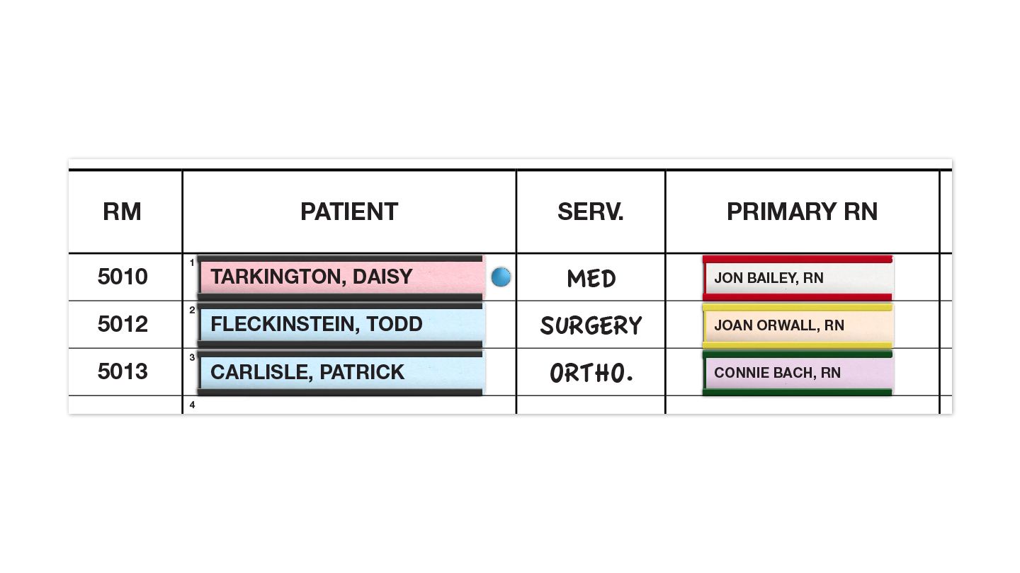 Nurse-Patient Schedule Magnetic Dry-Erase Hospital Whiteboard System